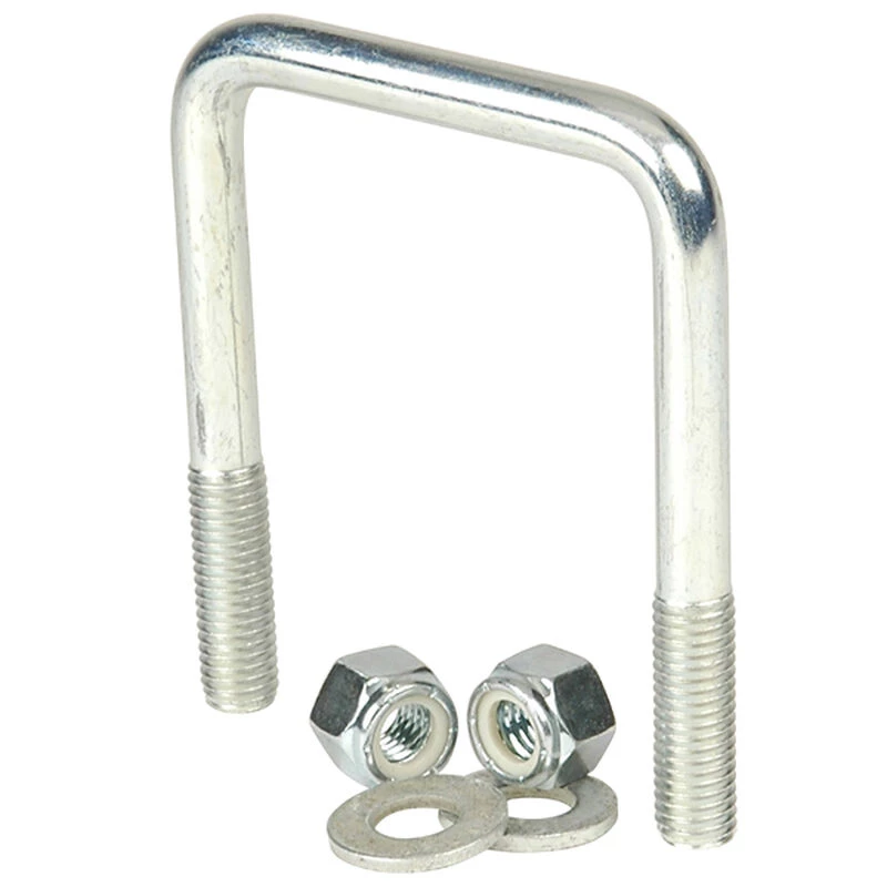 For mounting brackets to trailer frame. Package includes u-bolt , (2) USS flat washers and (2) nylon lock nuts. Square bend, zinc 3″ x 4-1/8″, 1-1/2″ thread.