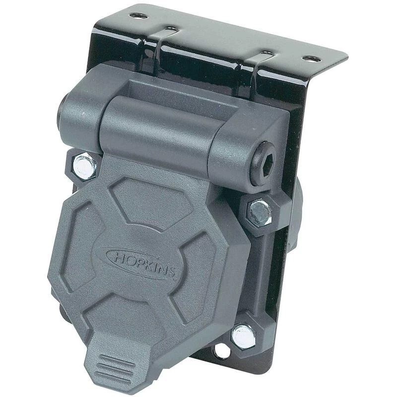 This side socket is oversized for maximum durability. It has a reinforced easy-grip lid that opens 180° for no-hassle connections. Internal seals are weatherproof and corrosion-resistant. It includes a powder coated mounting bracket, hex-head zinc plated screws, hardware and grease packets. Three-year warranty.