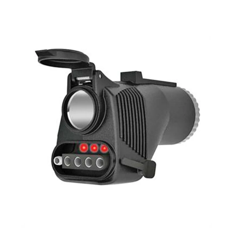 It features highly visible, cool blue LED circuit tester for instant completed circuit confirmation, and a built-in 12 Volt power outlet. Not only can you adapt the trailer to vehicle fast, but you can be certain the connections are correct, as well as power any 12 Volt accessory.