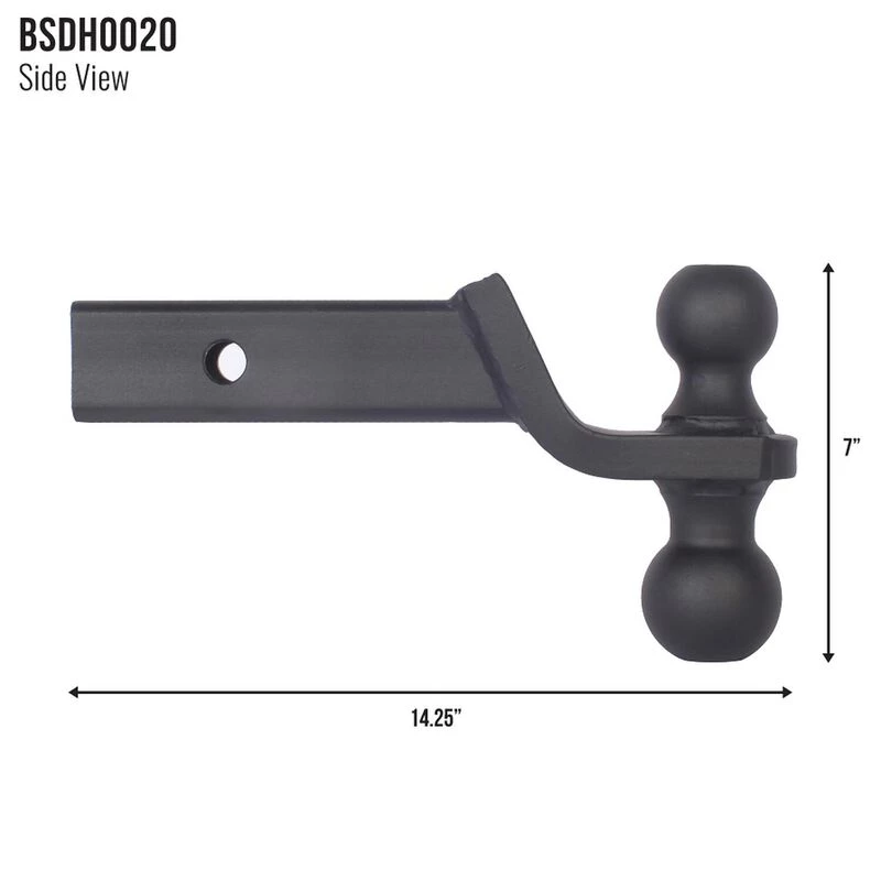 Trailer Valet Blackout Series Reversible Ball Mount with a 2 inch and 2-5/16 inch Ball and a 2 inch Drop. Topped with Trailer Valet’s Signature Wrinkle Black Powder Coating (700-hour corrosion resistance rating) for strength and durability while towing. 7,500 LBS Capacity.