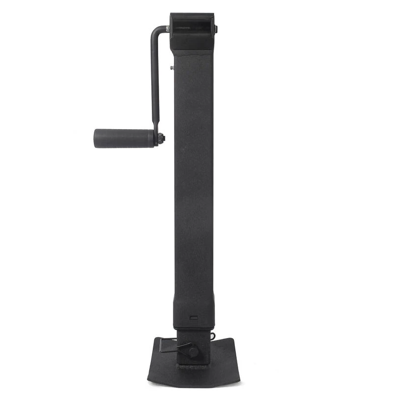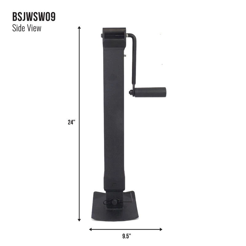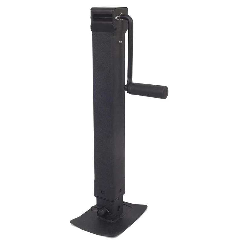 Trailer Valet Blackout Series 7,000 lbs capacity Side Wind Direct Weld-on jack. This jack has a 15 inch travel and an internal sleeve that alleviates wear and tear on the inner tube walls and to stabilize the jack when it is raised and lowered. Includes a foot plate and is topped with Trailer Valet’s Signature Wrinkle Black Powder Coating (700-hour rating).