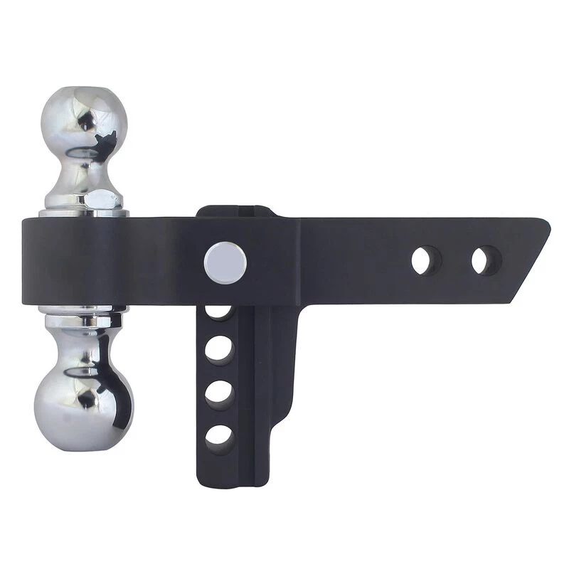 Trailer Valet Blackout Series Adjustable Drop Hitch with a 2 inch and 2-5/16 inch Ball and a 0-4 inch Drop. This drop hitch has a weight capacity of 10,000 lbs and is topped with Trailer Valet’s Signature Wrinkle Black Powder Coating (700-hour corrosion resistance rating) for strength and durability while towing.