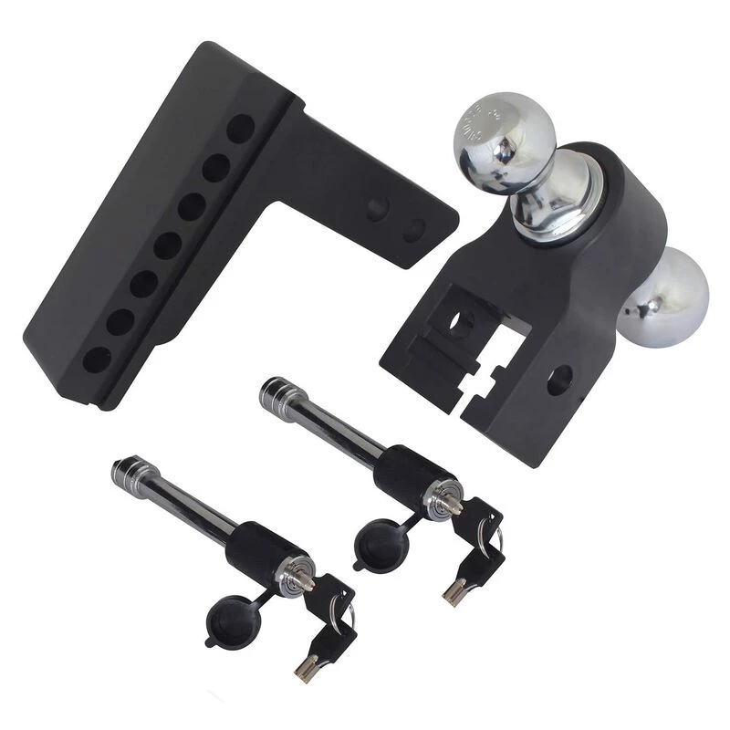 TRAILER VALET Blackout Series 8,000 lbs/10,000 lbs Adjustable Drop Hitch, 2″ & 2-5/16″ Ball, 0-6″ Drop