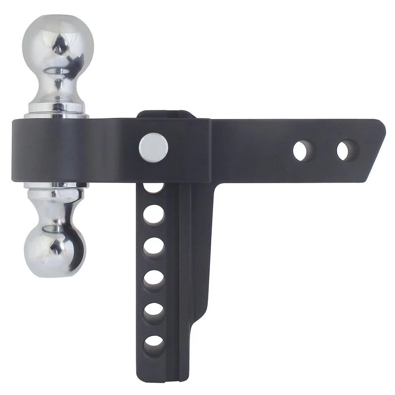 Trailer Valet Blackout Series Adjustable Drop Hitch with a 2 inch and 2-5/16 inch Ball and a 0-4 inch Drop. This drop hitch has a weight capacity of 10,000 lbs and is topped with Trailer Valet’s Signature Wrinkle Black Powder Coating (700-hour corrosion resistance rating) for strength and durability while towing.