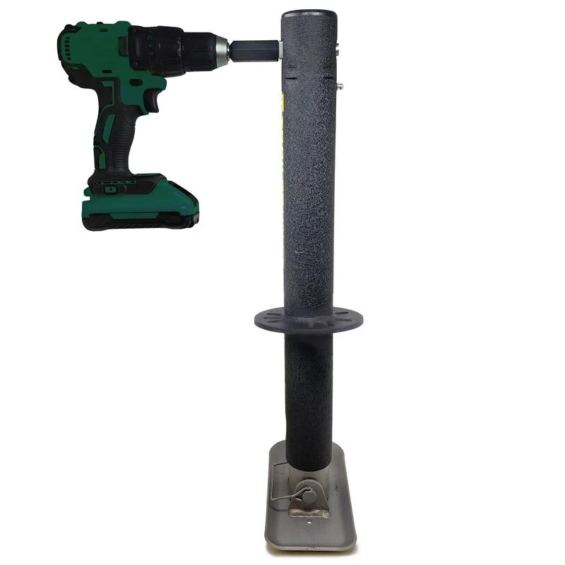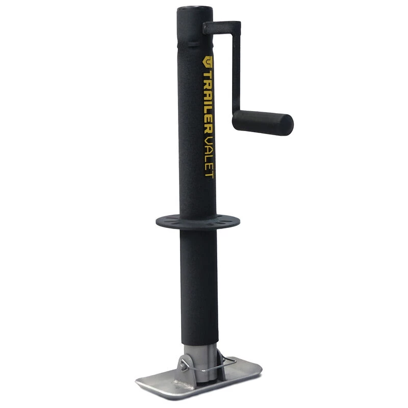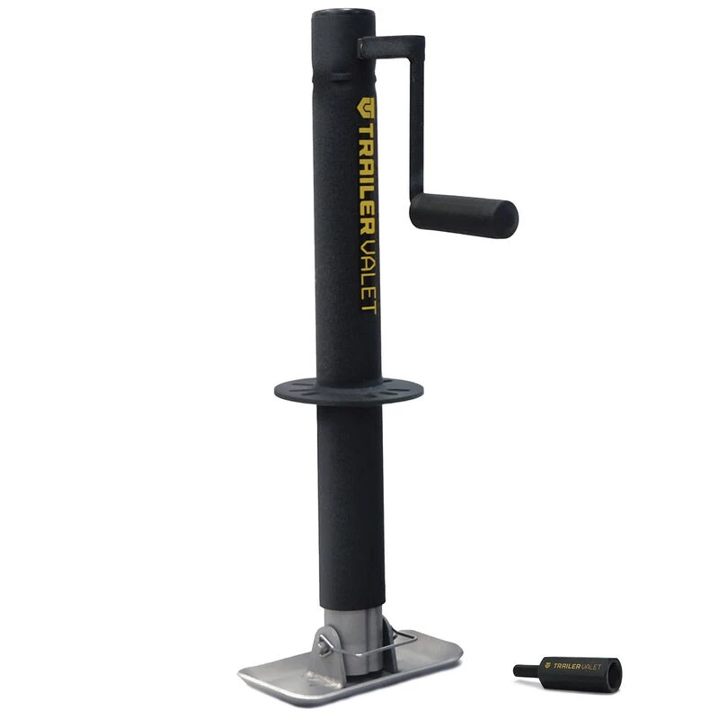 The Trailer Valet JX 2K Center is a manual hand-crank jack that has the versatility and capability to be powered by any 18-24V compact drill with the Trailer Valet Drill Attachment. It has a lift capacity of 2,000 lbs and its patented gear material composition delivers maximum efficiency while reducing heat retention.