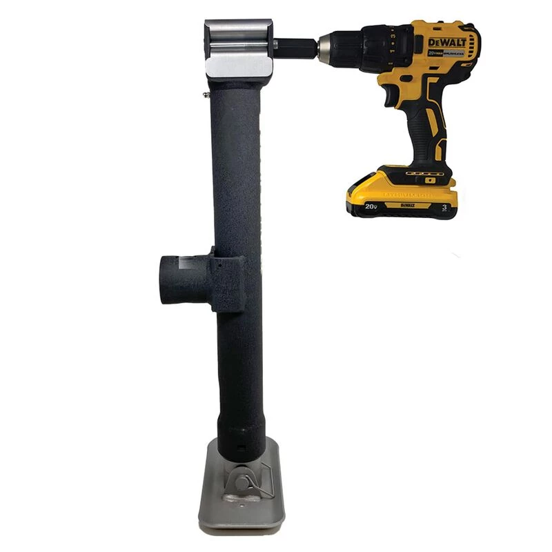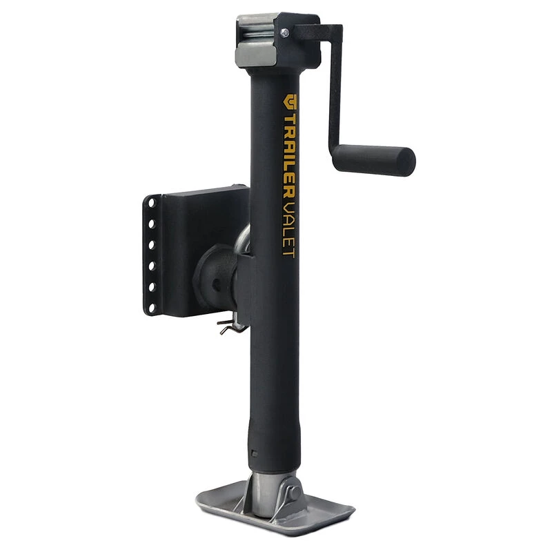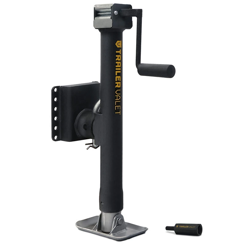 The Trailer Valet JX 5K Side is a manual hand-crank jack that has the versatility and capability to be powered by any 18-24V compact drill with the Trailer Valet Drill Attachment. It has a lift capacity of 5,000 lbs and its patented gear material composition delivers maximum efficiency while reducing heat retention.