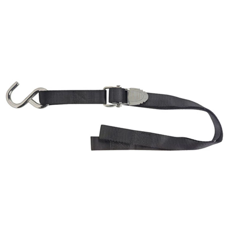 Bow tie downs feature SUR-Grip Kwik Lok buckle, polyester webbing, zinc-coated S-hook and loop end for easy attachment.